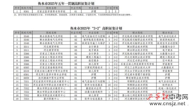 附件:衡水市2025年“3+2”和五年一貫制高職征集志愿計(jì)劃